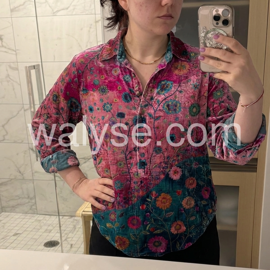 Beautiful shirt! It has a really lovely subtle sheen to the fabric that makes it look much more expensive than it is. The contrasting floral design really pops. Highly recommend if you want to add some color to your wardrobe.