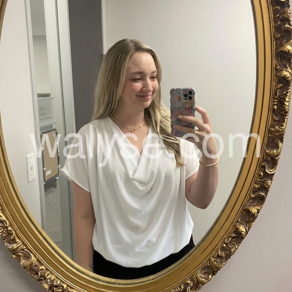 Absolutely love this top! The draped cowl neck is so flattering and elegant. The material is lightweight and flowy, perfect for summer or layering under a cardigan. It looks fantastic paired with my favorite jeans.