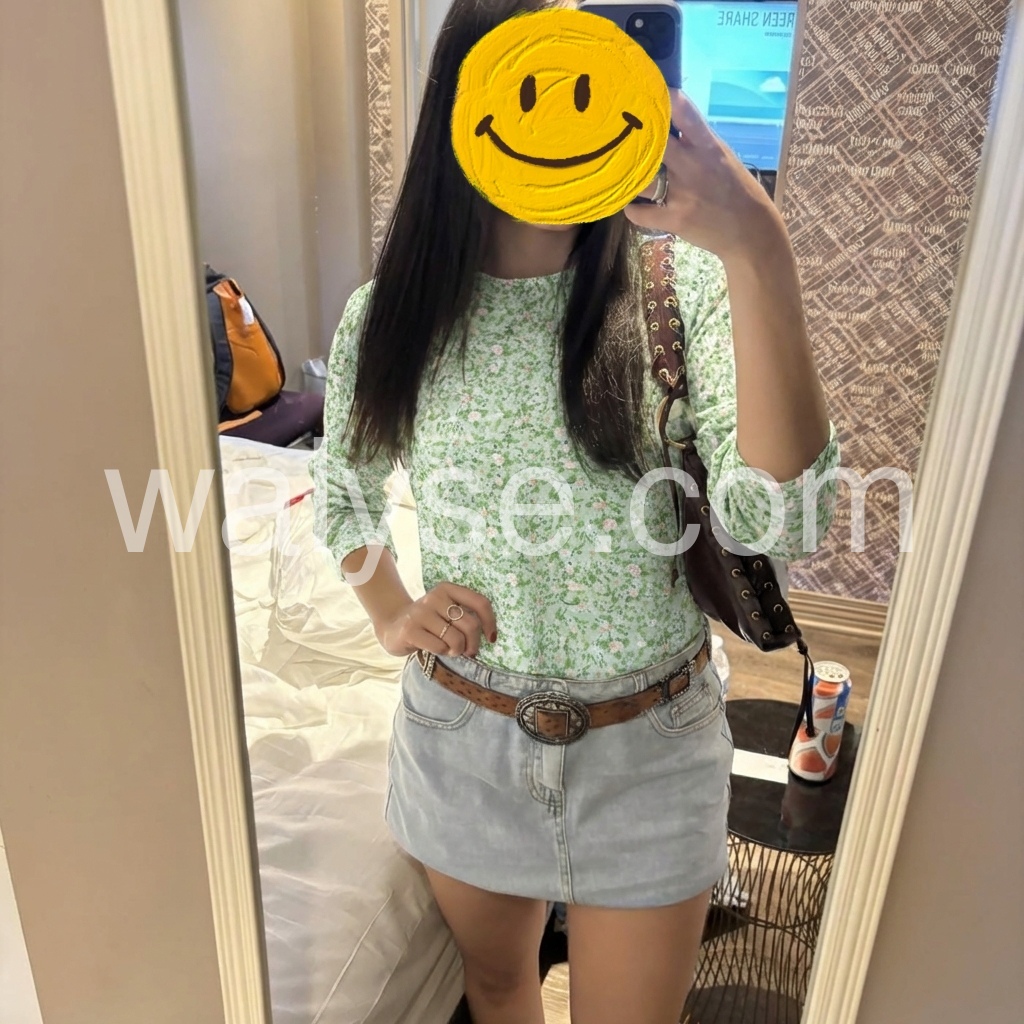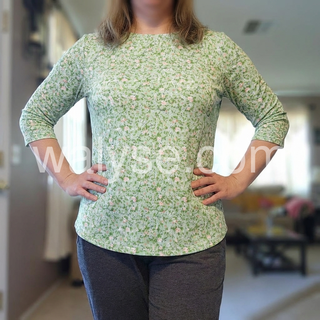 Absolutely love this top! The light green floral pattern is perfect for spring. It fits true to size and the material is incredibly soft. I have received so many compliments wearing it out.