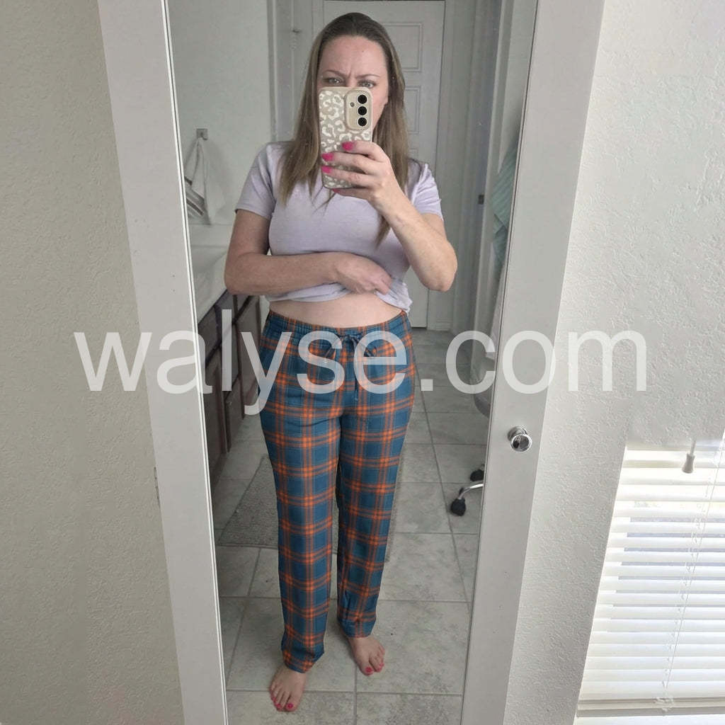 Loved the look you pulled off with those blue and orange plaid pants. They pair so well with the simple sandals, giving off a relaxed, stylish vibe perfect for a casual day out.
