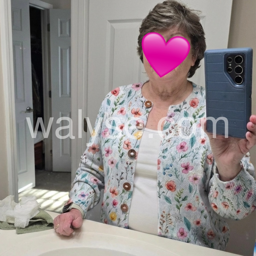 This sweater is absolutely gorgeous! The watercolor floral print is so delicate and perfect for spring. It is lightweight but keeps me warm on chilly mornings.