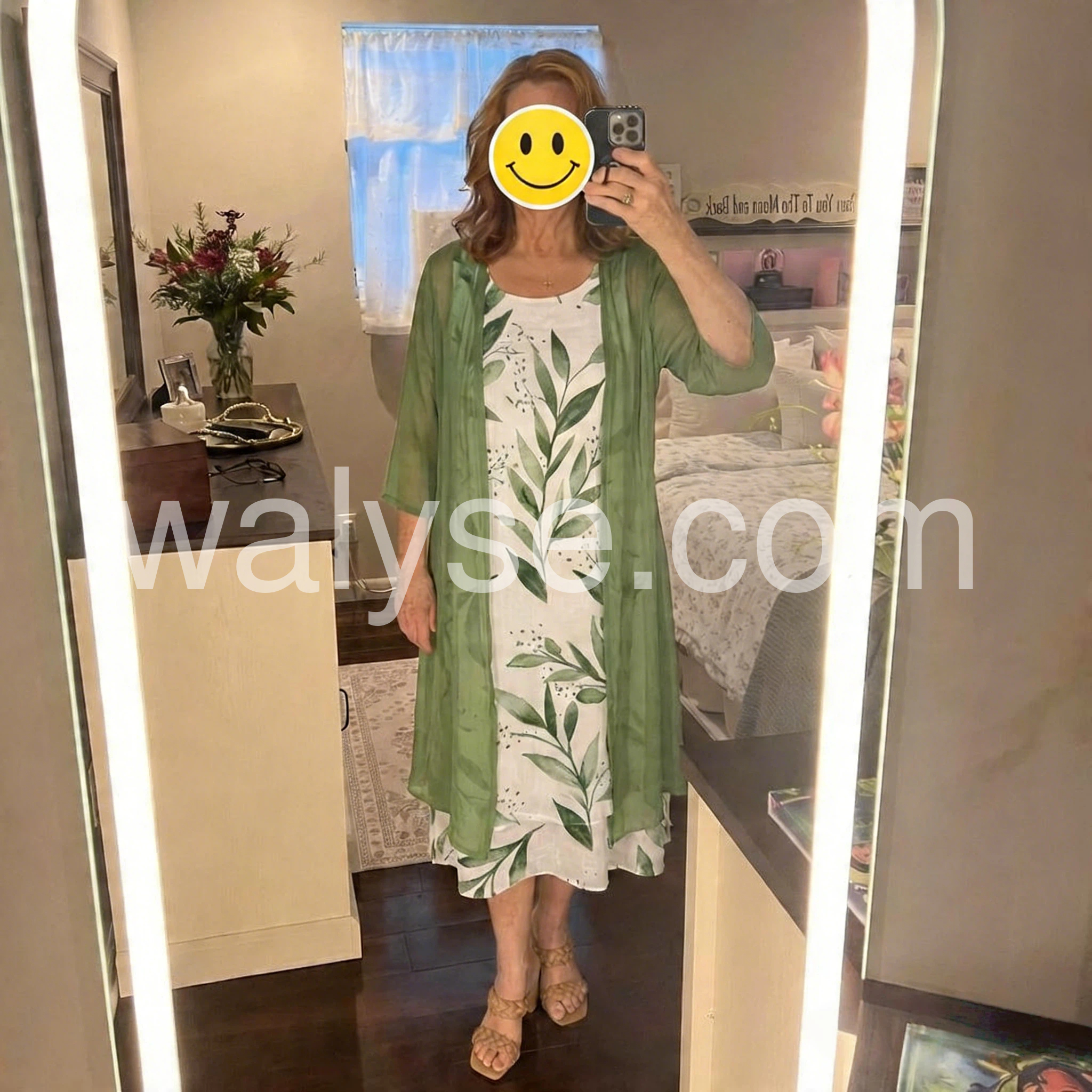 Every time I wear this dress and jacket set I get stopped and asked where I bought it. The olive green shade is very flattering on my skin tone. It washes well on a delicate cycle and air dries perfectly.