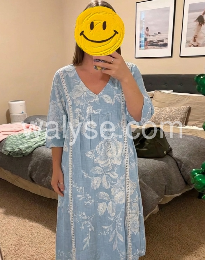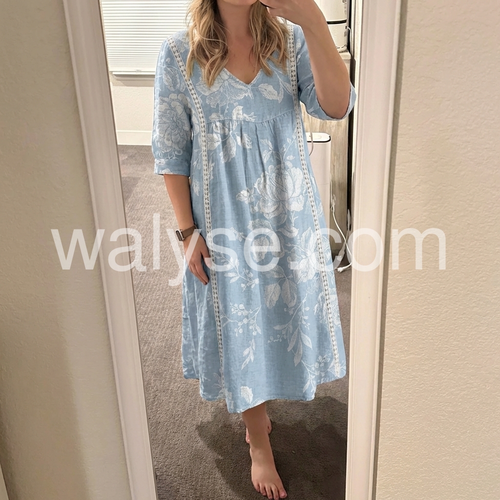 Bohemian Floral Print V-Neck Midi Dress with Pockets