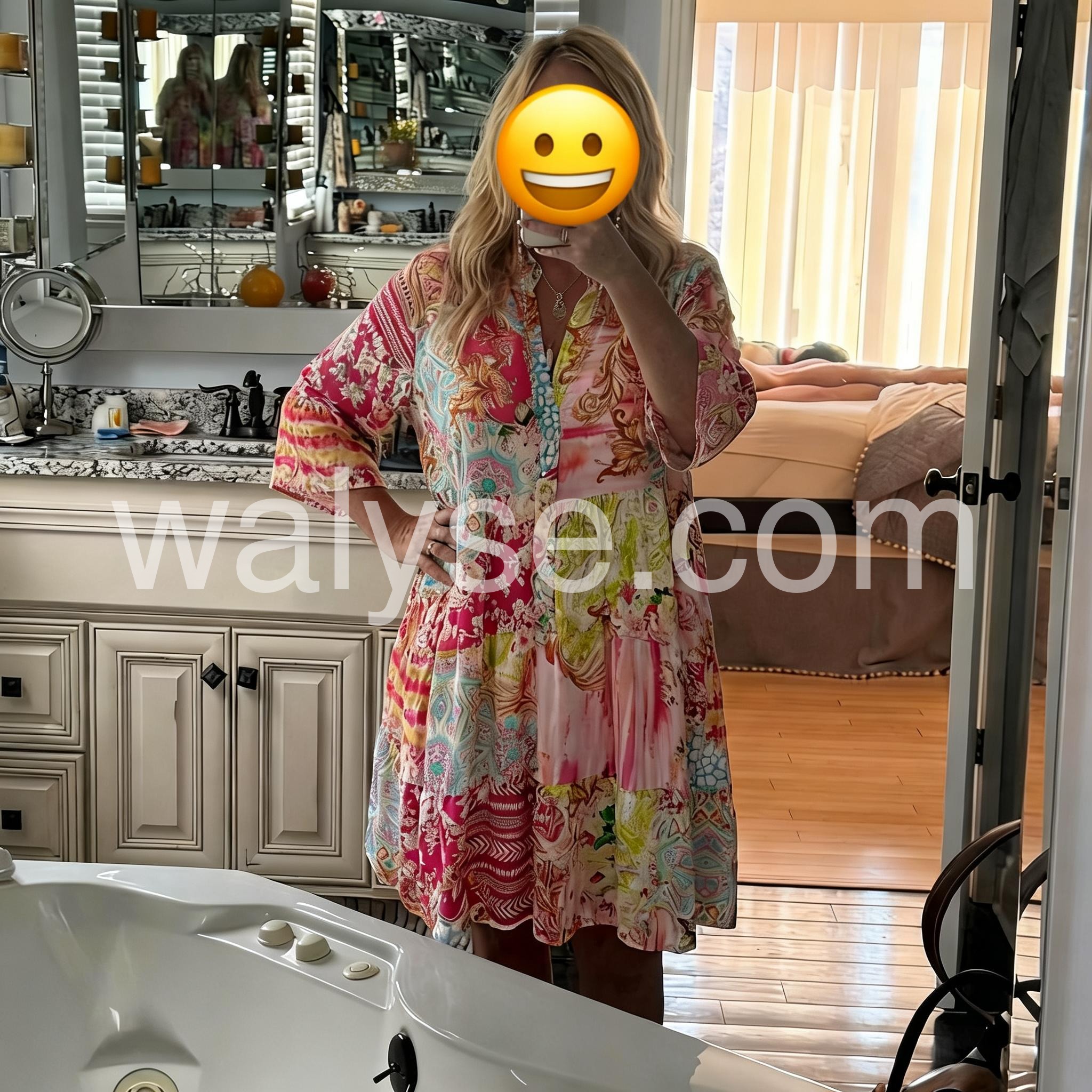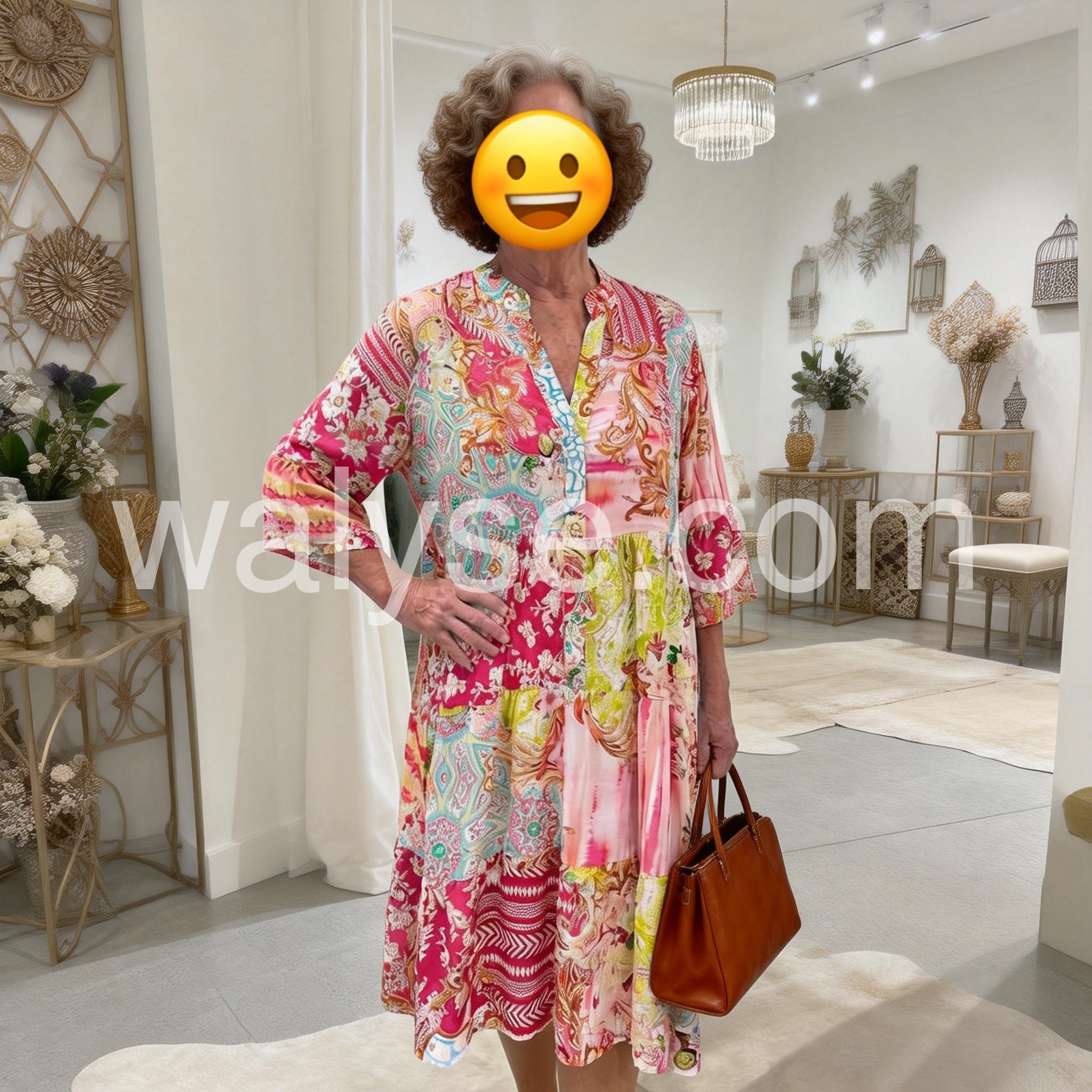 As a new mom, I wanted something comfortable but still stylish, and this dress is perfect. It flows nicely over my midsection and makes me feel beautiful. The vibrant colors instantly boost my mood.