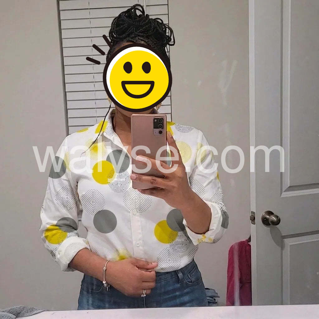 Such a fun and bright blouse! The yellow accents are so cheerful. I wore it out to brunch and got several compliments. The fabric is soft and breathable, making it great for spring and summer.