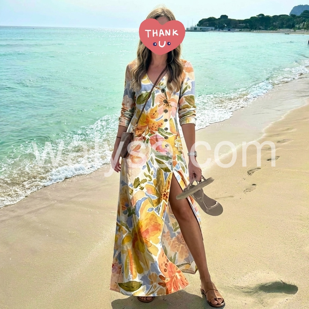 This dress exceeded my expectations. I love that the buttons are functional so you can create a slit as high or as low as you want. The long sleeves make it great for transitioning from summer to fall. Highly recommend!
