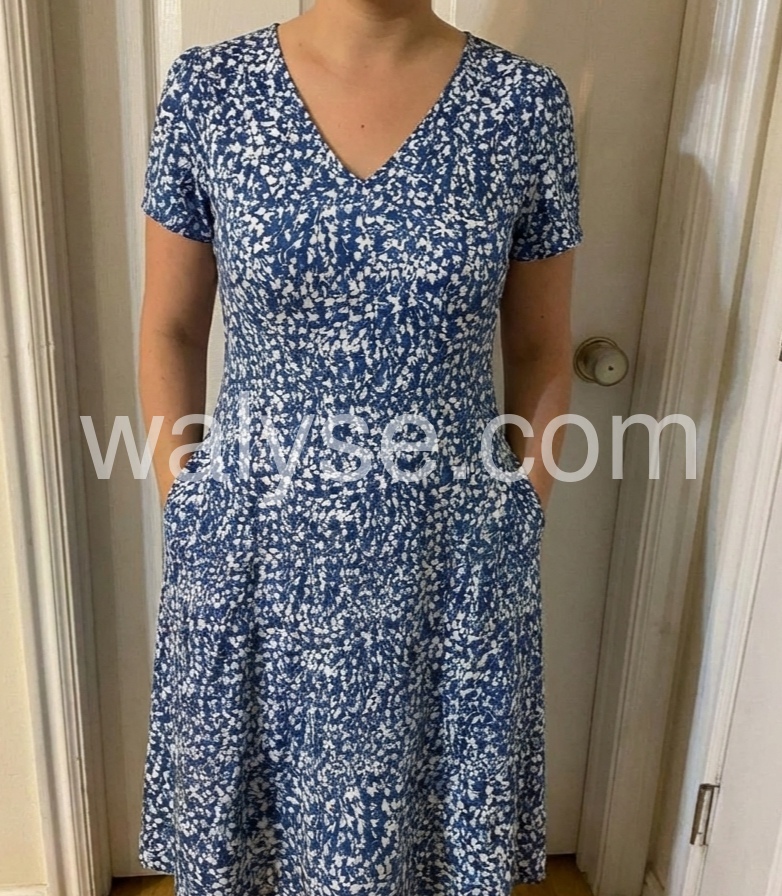 Five stars! This blue ditsy dress exceeded my expectations. It feels like a boutique find. Very soft, lightweight, and hugs all the right places without clinging.