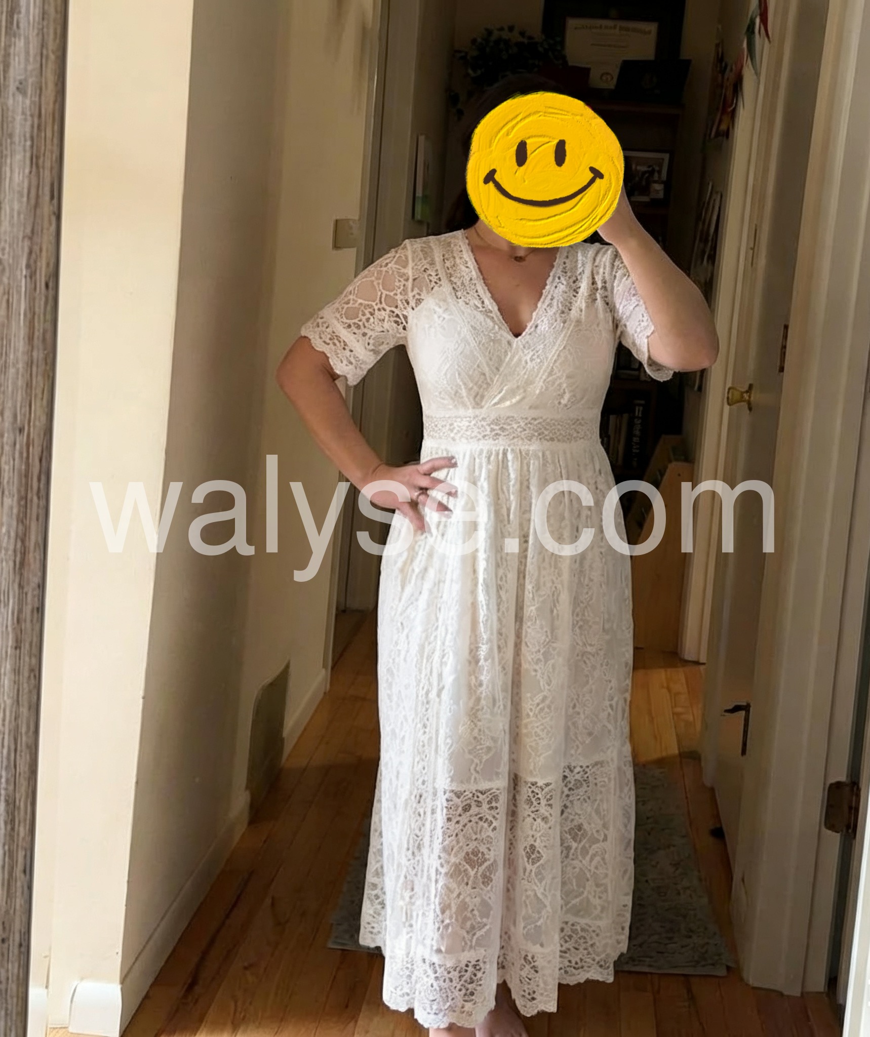 Absolutely gorgeous dress for my summer vacation! The lace detailing is beautiful and the fit is incredibly flattering. Plus, it has pockets!