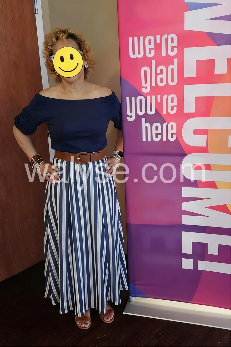 Perfect for my beach vacation! These palazzo pants are so flowy they almost look like a maxi skirt. The vertical stripes are super flattering and the material is incredibly light and breezy.