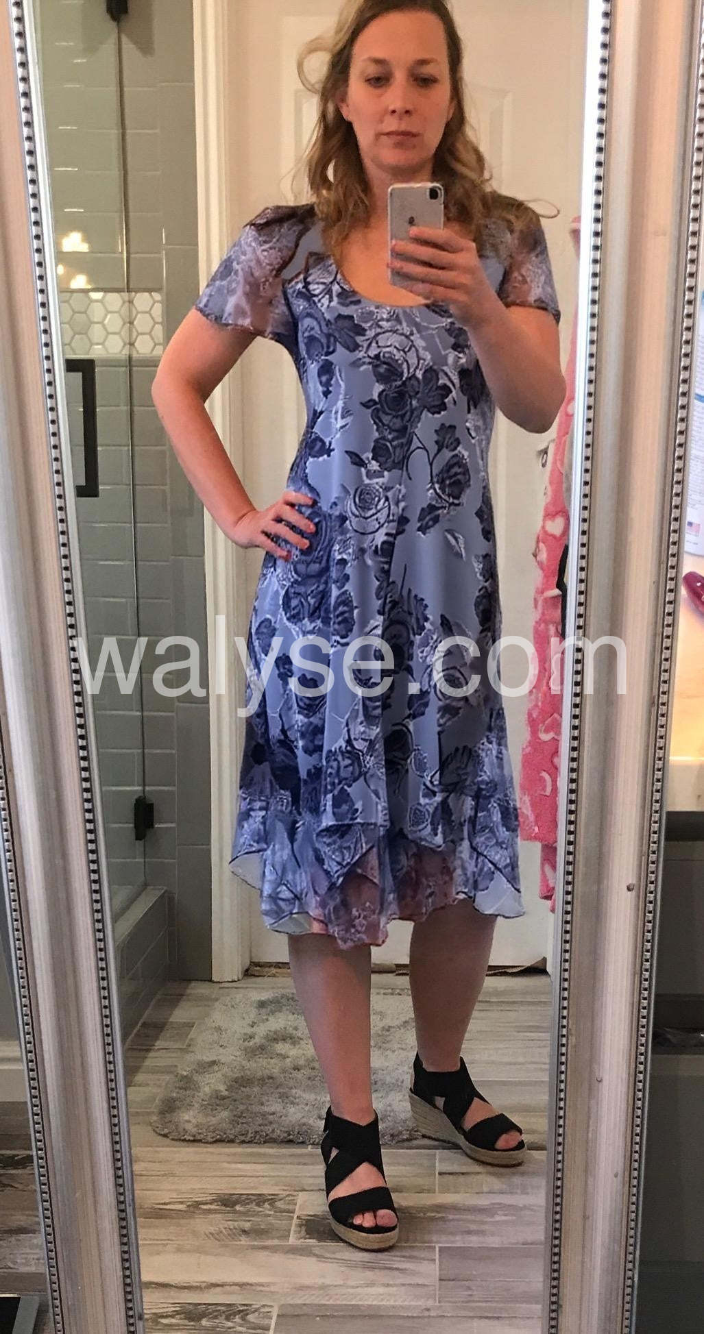 As a mature woman, it is hard to find dresses that are stylish, comfortable, and have an appropriate length. This dress hits all the marks. The scoop neck is not too low and the sheer overlay gives it a very classy look.
