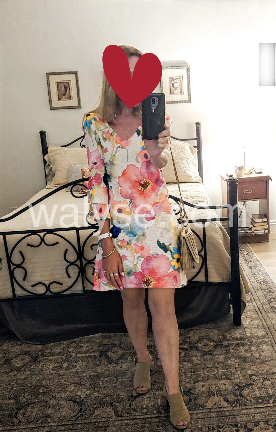 This is my new favorite summer dress. The shift cut is very forgiving and it hangs perfectly. I paired it with strappy sandals and it looked incredibly chic.