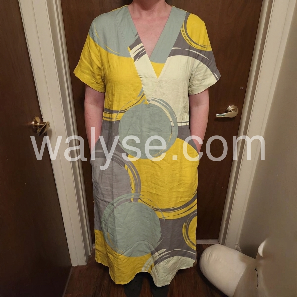 I bought this dress for my trip to Greece and it was absolutely perfect! The mustard yellow and grey print is so unique and vibrant. It looked great in photos and kept me cool in the hot sun. Highly recommend!