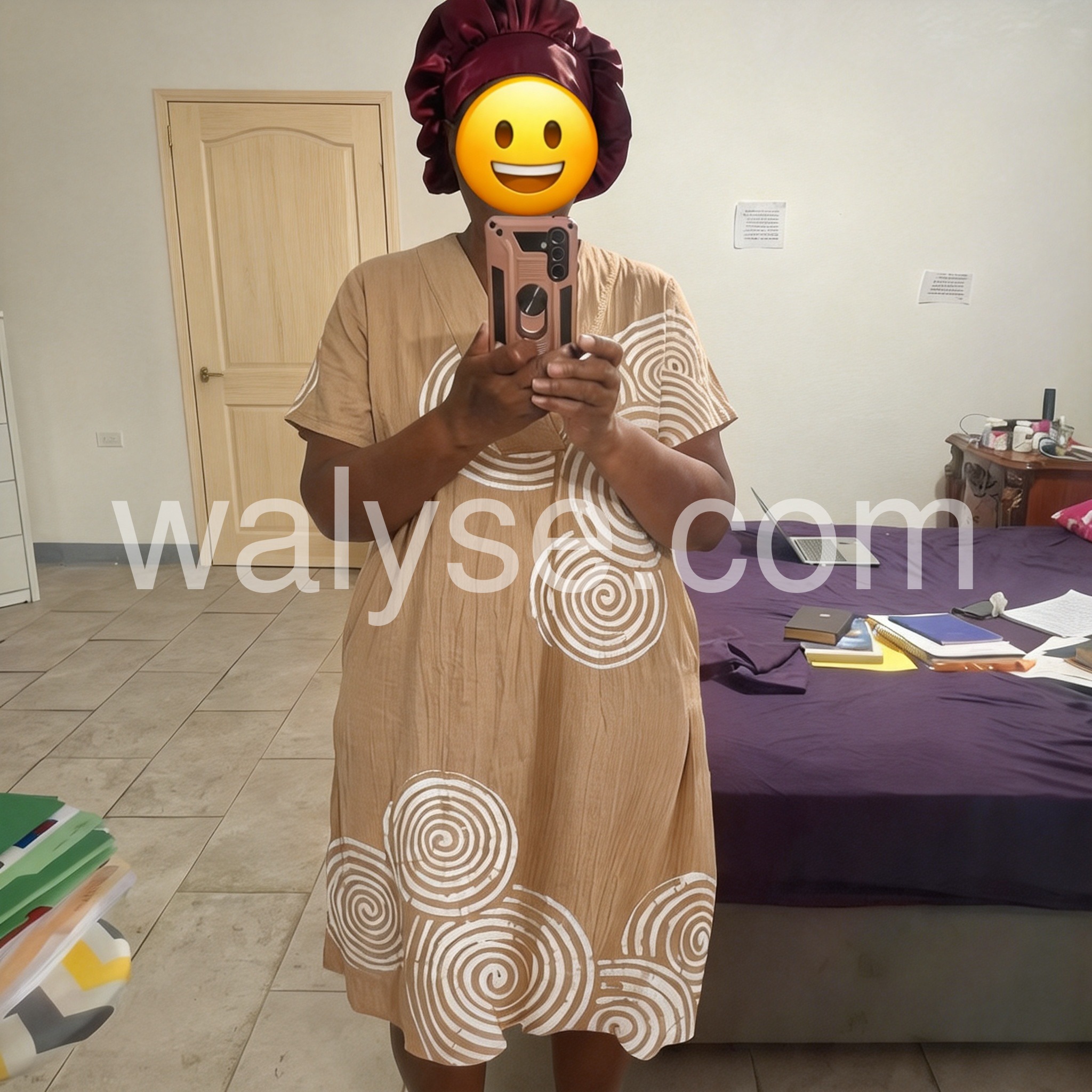 Stylish Brown Short Sleeve Spiral Print Midi Dress