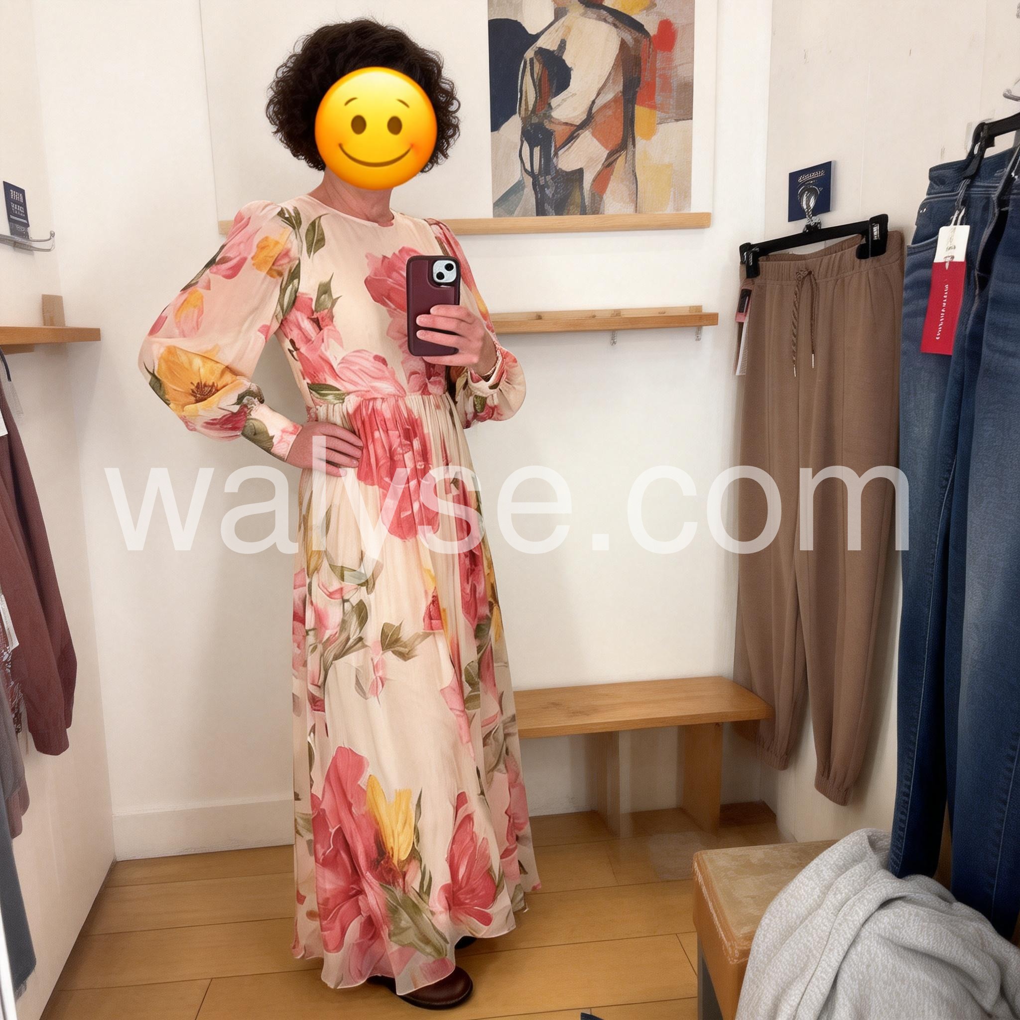 Romantic Floral Print Long Sleeve High Waist Midi Dress