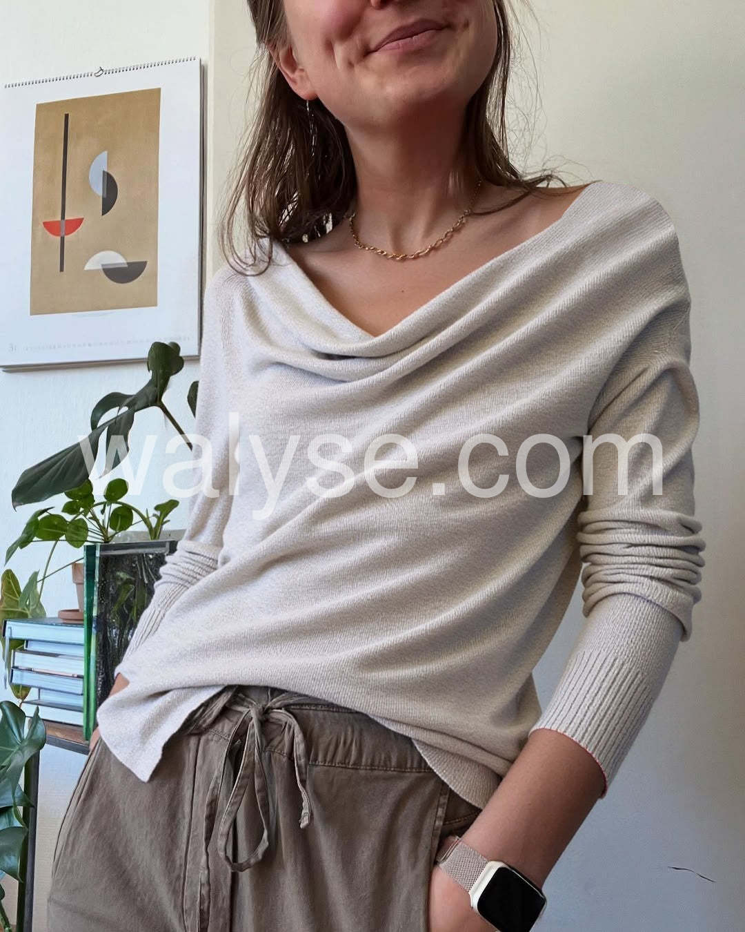 Absolutely love this sweater! The cowl neck drapes beautifully and gives it an elegant touch while still being super cozy. The light grey color goes with practically everything. Highly recommend!