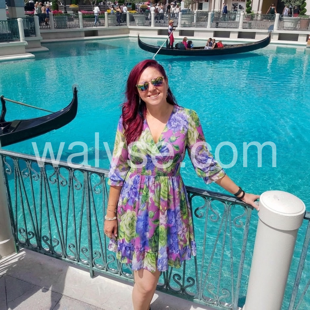 Absolutely love this dress! The purple and green floral print is so vibrant and perfect for spring. The smocked waist is very flattering and forgiving.