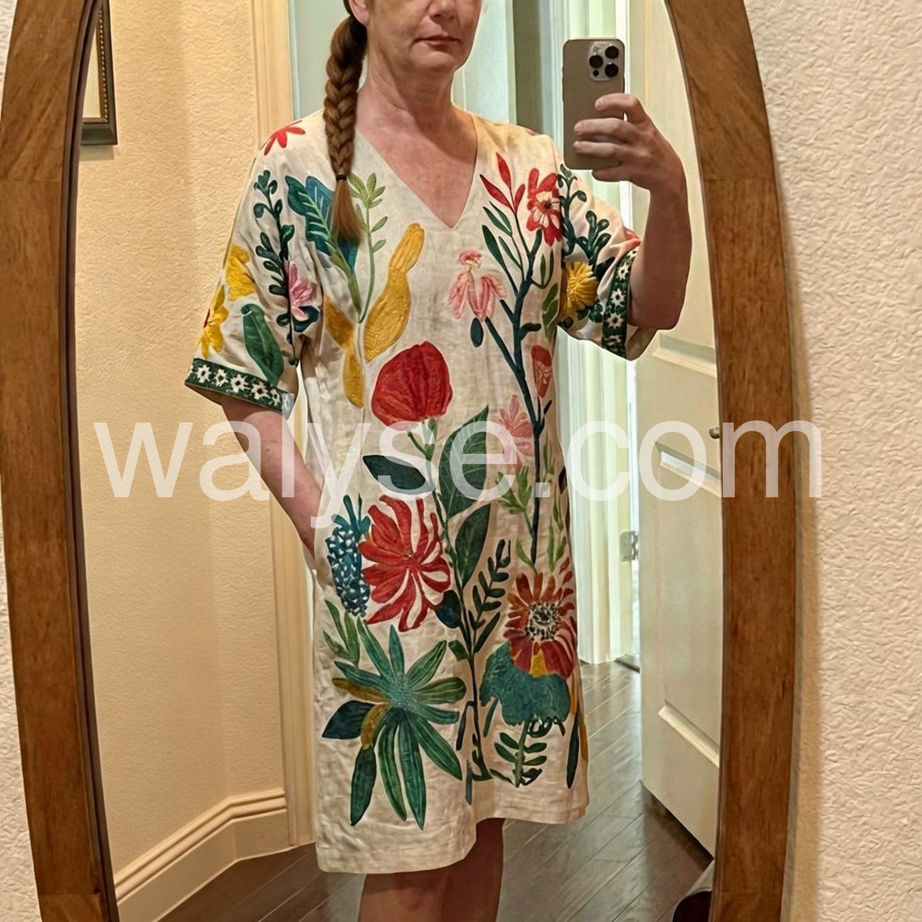 I bought this dress for my upcoming vacation to Cabo, and it is absolutely perfect! The fabric is lightweight and breathable, making it ideal for the hot weather. The floral print is so vibrant and summery. I wore it over my swimsuit to the beach and then straight to lunch. Highly recommend!