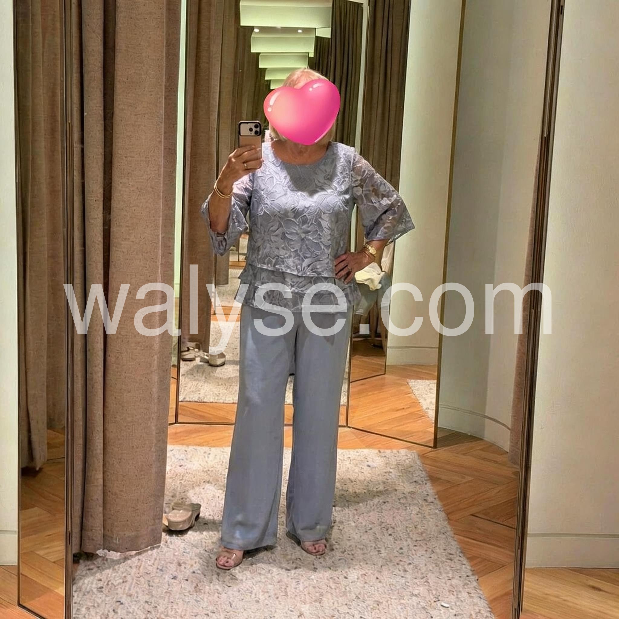 Absolutely beautiful and incredibly comfortable. As an older woman, I struggle to find elegant outfits that do not cling to my midsection. The tiered top on this set is extremely forgiving and the flowy pants are a dream. Five stars.