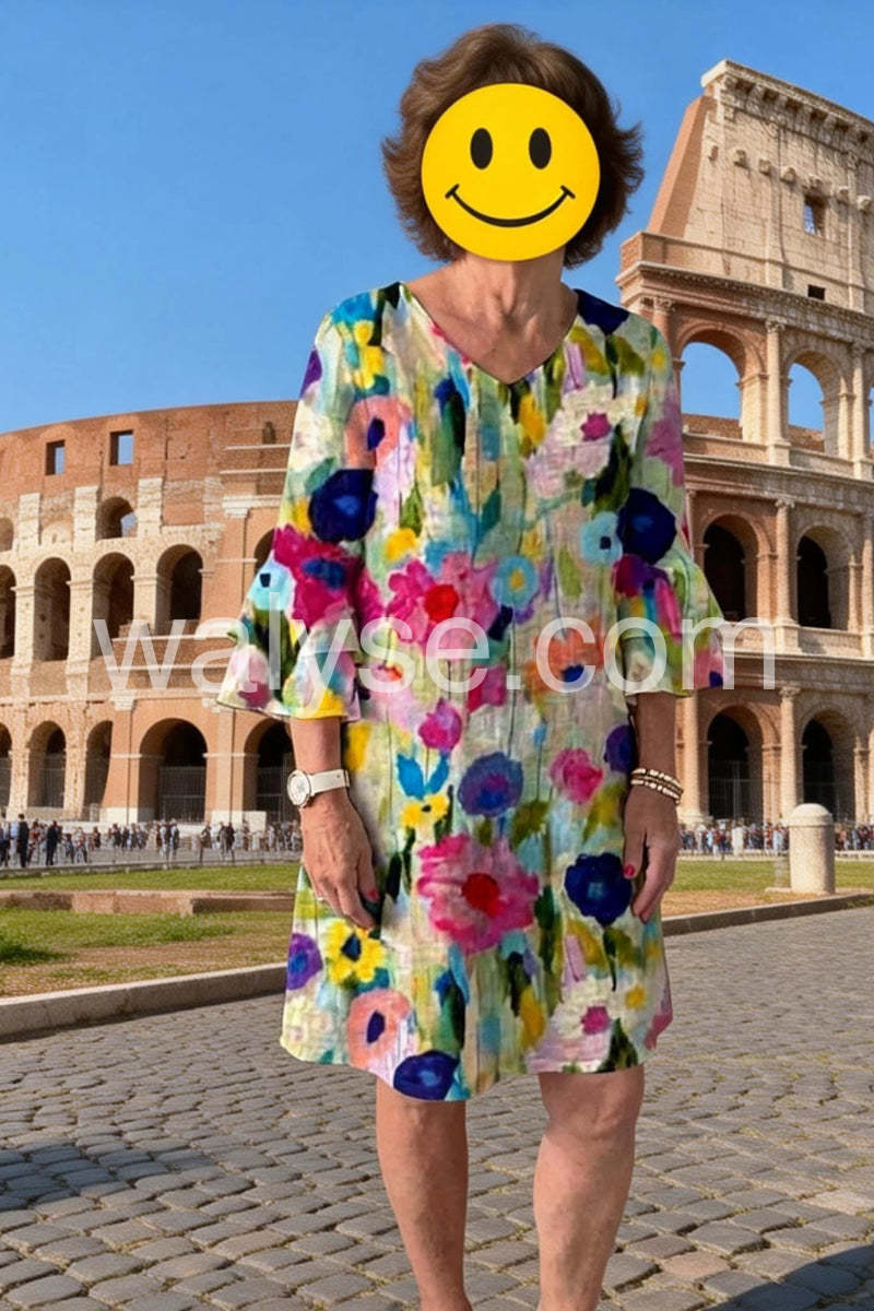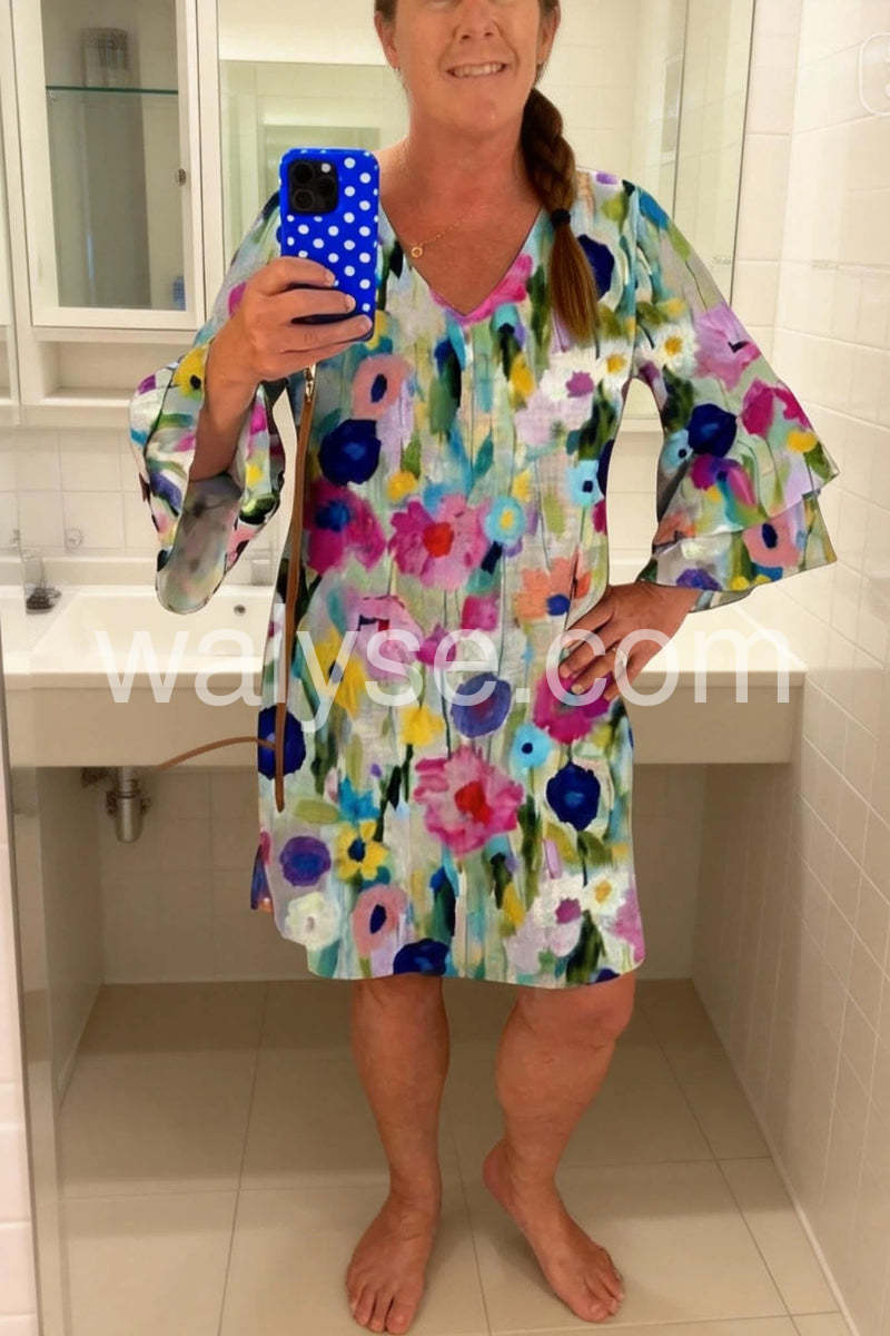 Introducing our Romantic Floral Print V-Neck Mini Dress, designed to make a statement with its delicate print and flirty V-neckline. Made with high-quality materials, this dress is perfect for any occasion. Elevate your style and exude confidence with this must-have piece.
