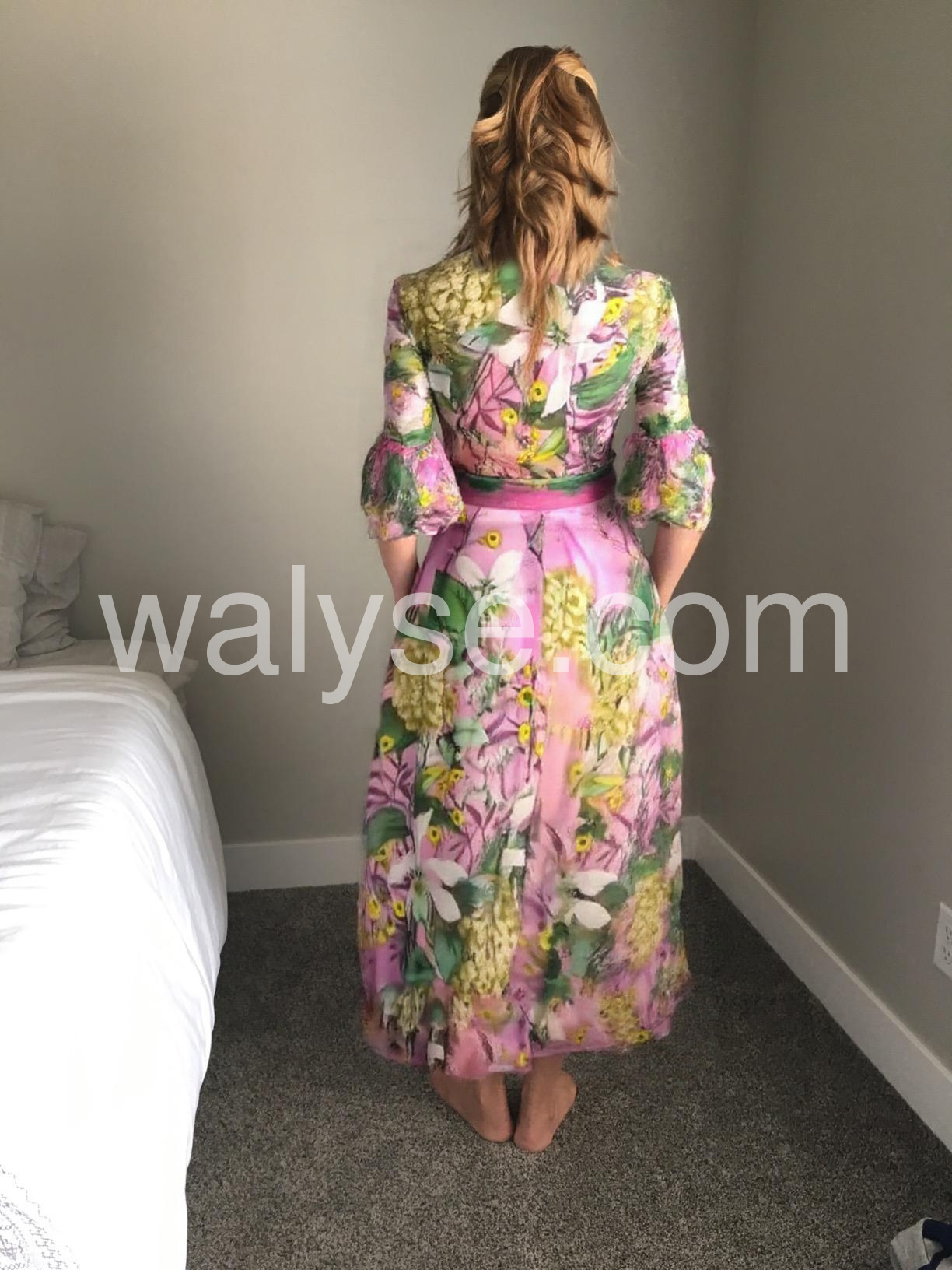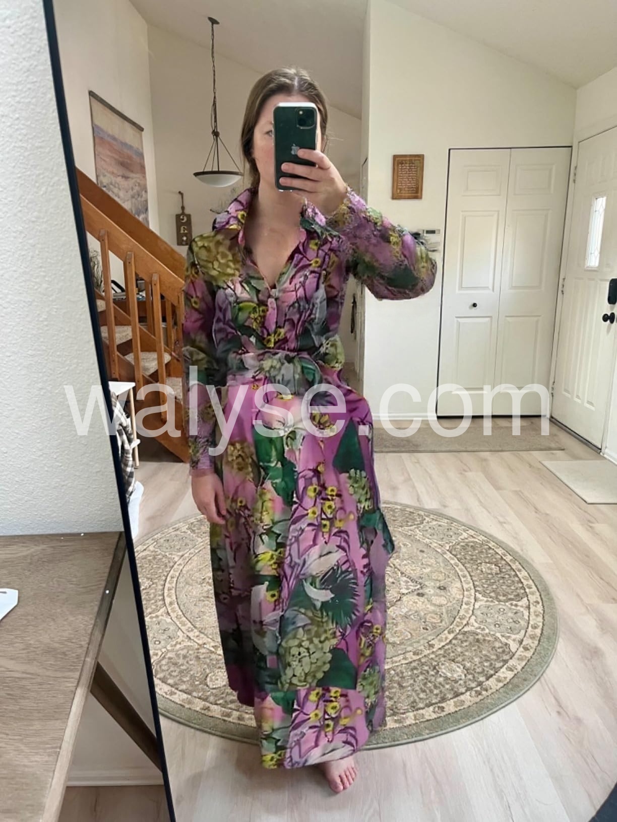 Stunning dress! The green and pink floral print is gorgeous. It is quite long, so I had to wear it with heels, but it looked incredibly elegant. The fabric feels silky and expensive.