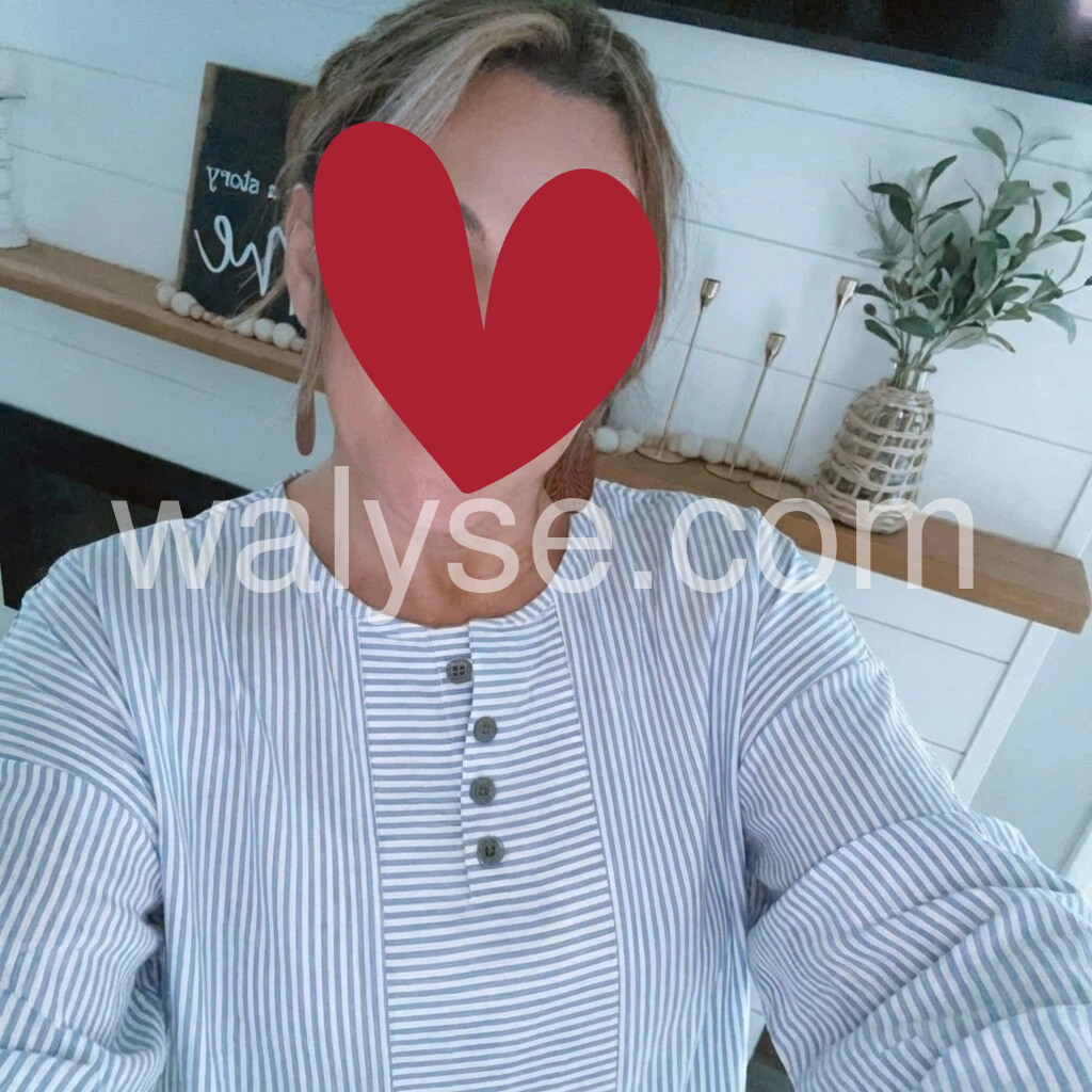 This long-sleeve top features a clean blue-and-white vertical stripe pattern with a buttoned placket. The relaxed fit and wide sleeves offer comfort and ease. Soft fabric perfect for casual wear. Ideal for pairing with jeans or pants. Simple, modern, and effortlessly chic.