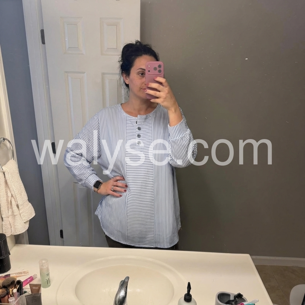 Absolutely love this shirt. I usually don't wear blue but I wanted to branch out and I'm so glad I did. The fit is perfect as is the length.