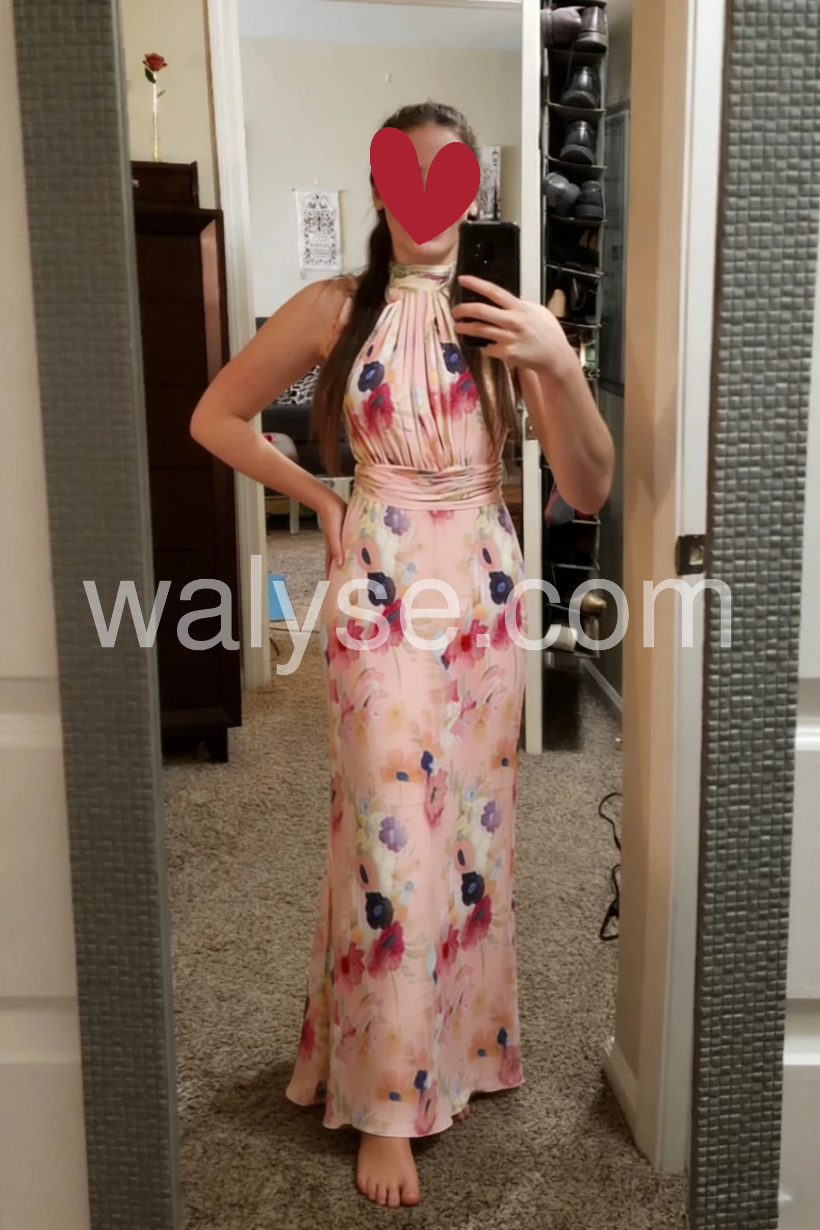 Wore this to a spring wedding and got so many compliments! The material is surprisingly high quality and flows beautifully when you walk. The halter neckline is very flattering.